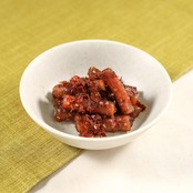 一口大に切ったごぼうを、削り節と合わせて甘辛く炊いています。